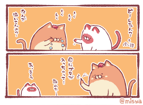 こんにちは☀ また一週間がはじまりましたね~^^ 今日はとある日の #にゃんぱん と #ジャムねこ ちゃんの様子をお届け! 仲良しな二匹に癒されてください💖 #イラスト