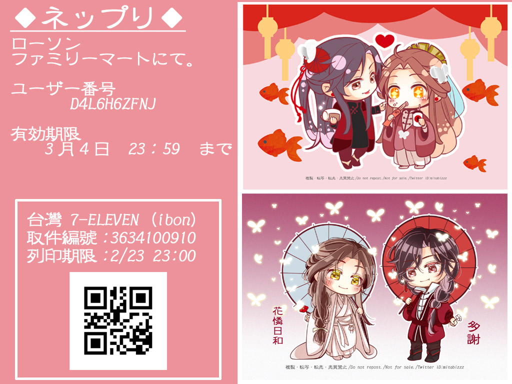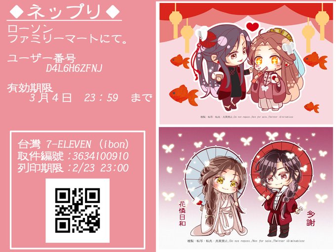 ネップリのご案内です! ローソン・ファミマ/台湾ibonにて印刷可能です!✨ また後日Twitterにもイラスト掲載します😊✨ 台湾ibon初めて登録したので失敗していたらすみません💦