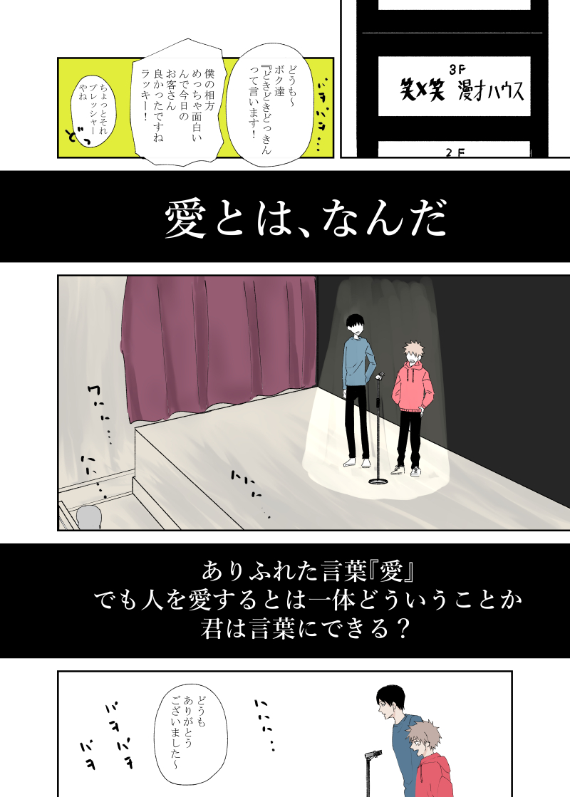 2 5 #創作BL漫画 #漫画が読めるハッシュタグ 芸人の世界を舞台にしたBL漫画です 「愛とは、なんだ 第一話相愛」① 22/01/18 13:11