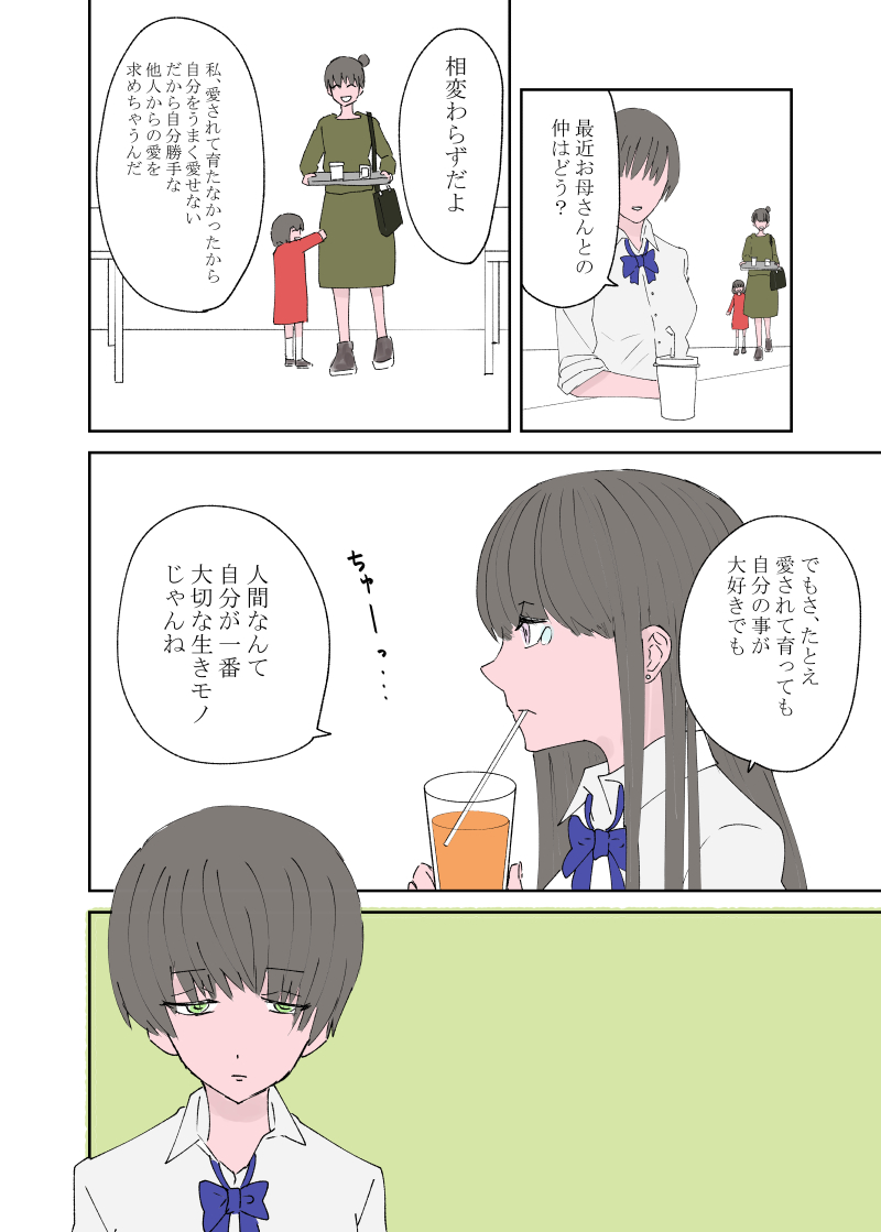 1 2 #漫画が読めるハッシュタグ #Web漫画 #創作漫画 女の子の友情を描きました。 拙いですが読んでいただけたら幸いです。 22/01/20 21:43