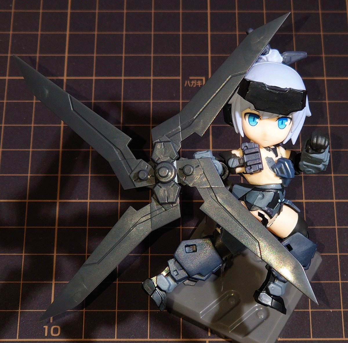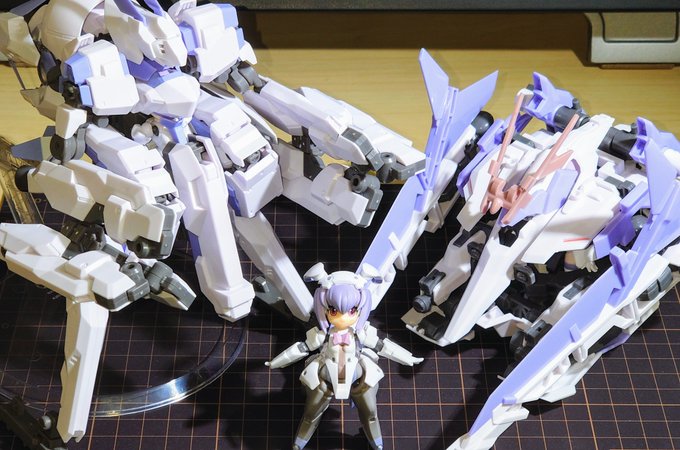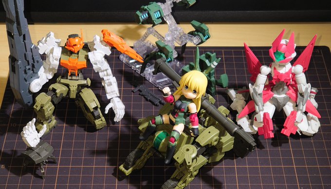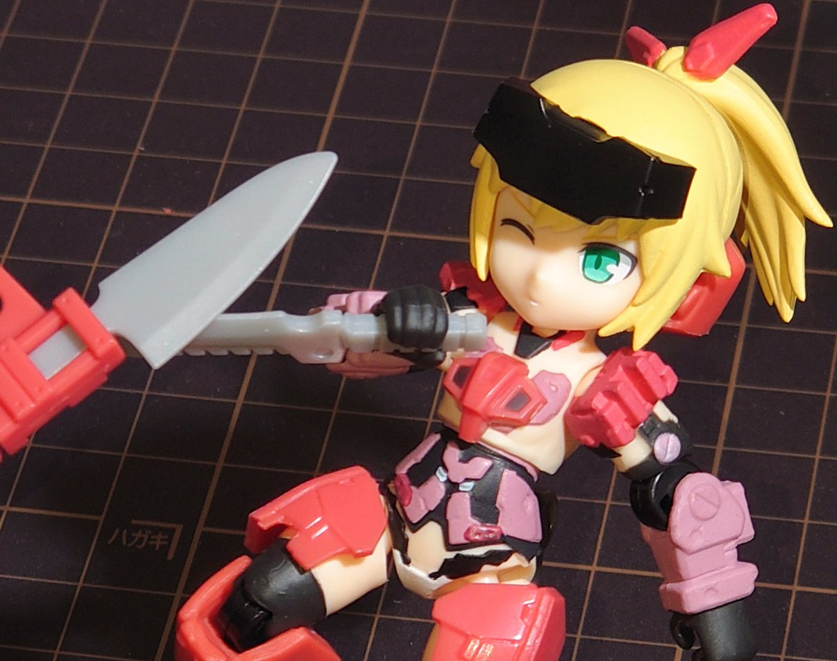 本来の持ち主(?)のミレニアに装備させるとこんな感じ。(1枚目、2枚目) 思った以上にパーツの組み替えに応用が利いて汎用性が高い装備。 大型のクローみたいな形にもできる。(迅雷に装備させてるけど3枚目) #デスクトップアーミー