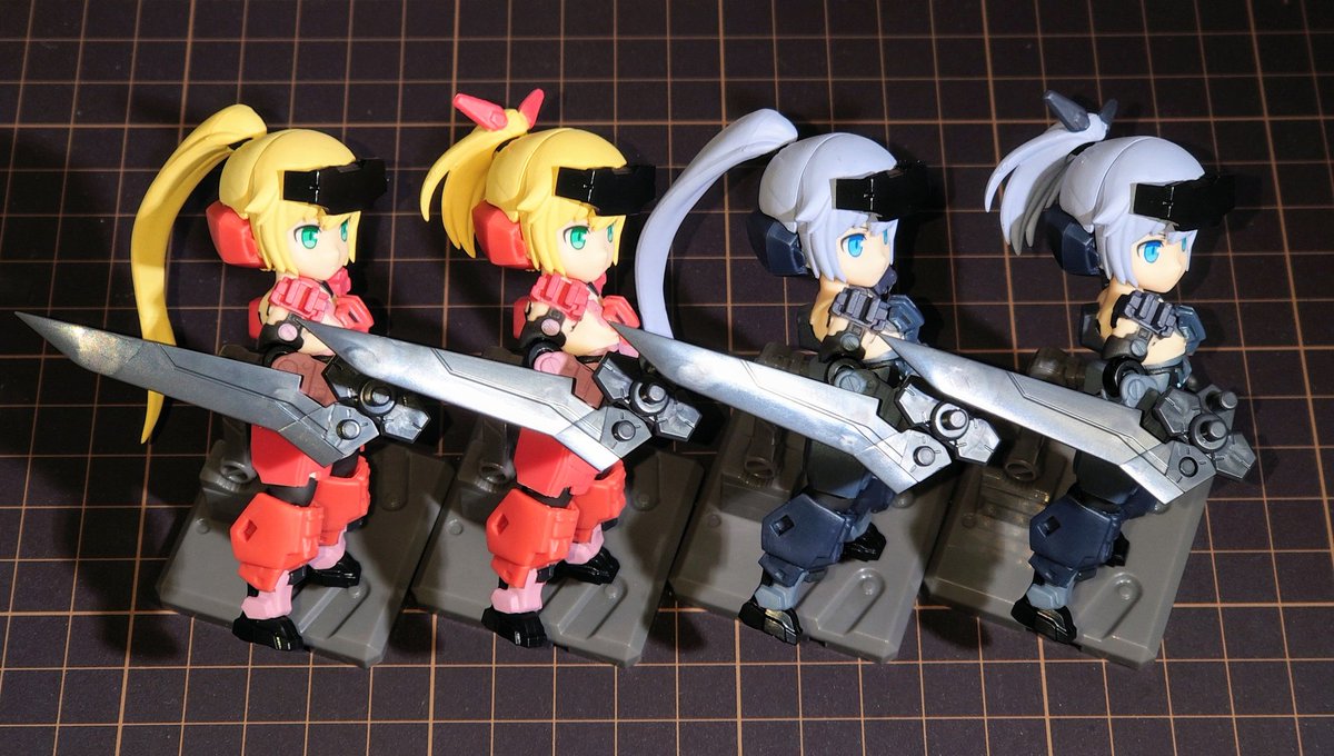 昨日に続き今夜はDTA迅雷シリーズの02 赤影 Mode-B。(°ω° ) 01 赤影との違いは髪型で、長さが短くなって髪飾りがついてる。 武装は01 赤影と共通。 表情変えパーツは「ダメージ顔」。 #デスクトップアーミー
