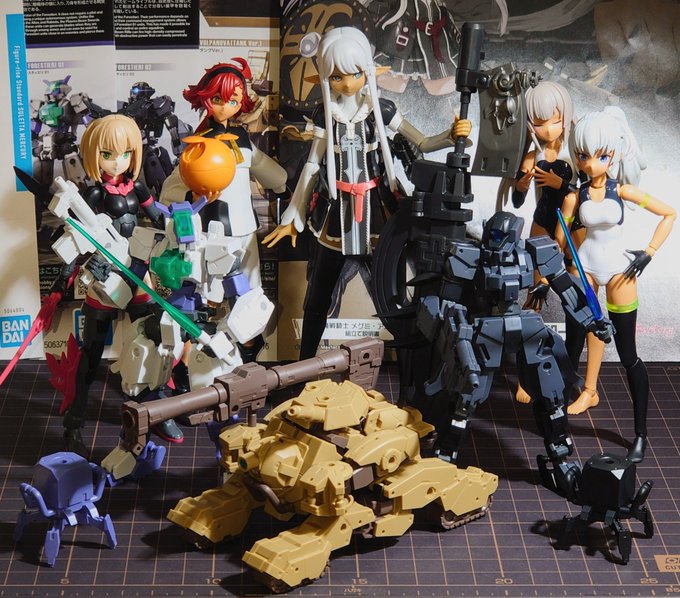 #今月作ったプラモ晒そうぜ 6月の分。 ゴッズオーダーのメグミさん。 サンマルのMSはティアーシャ、ボディパーツS04とS02、腕&脚パーツの黒色。 MMはヴォルパノヴァ(タンクVer.)、フォレスティエリ01と02。 フィギュアライズSのスレッタ。