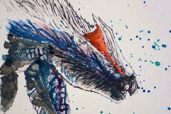 ナルガクルガ希少種 参戦おめでとう〜!!!!! #MHサンブレイク #MonsterHunter #水彩画