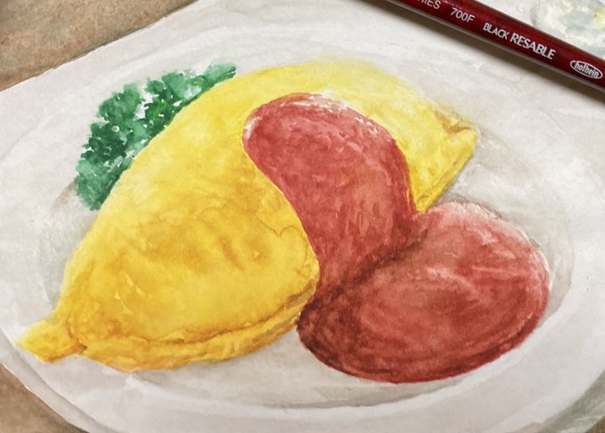 0 23 今日は好きな食べ物🥚 オムライスを描きました🍽 #水彩強化マラソン2021夏 #筆LOVE @HolbeinArt 21/07/09 23:41