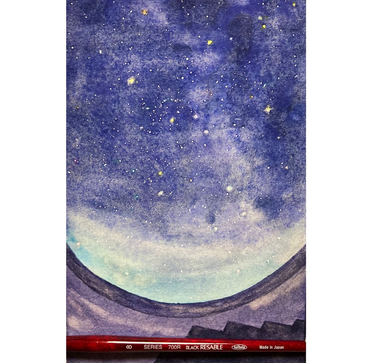 今日は早めに週テーマの天体観測 プラネタリウムを描きました🌃 #水彩強化マラソン2021夏 #筆LOVE @HolbeinArt