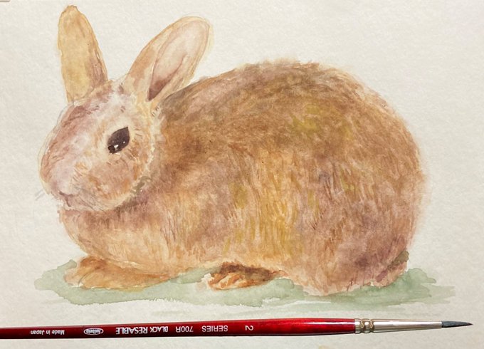 今日は気分的に動物を🐰 いつもぼーっと見てると癒される うさぎを描きました #水彩強化マラソン2021夏 #筆LOVE @HolbeinArt