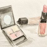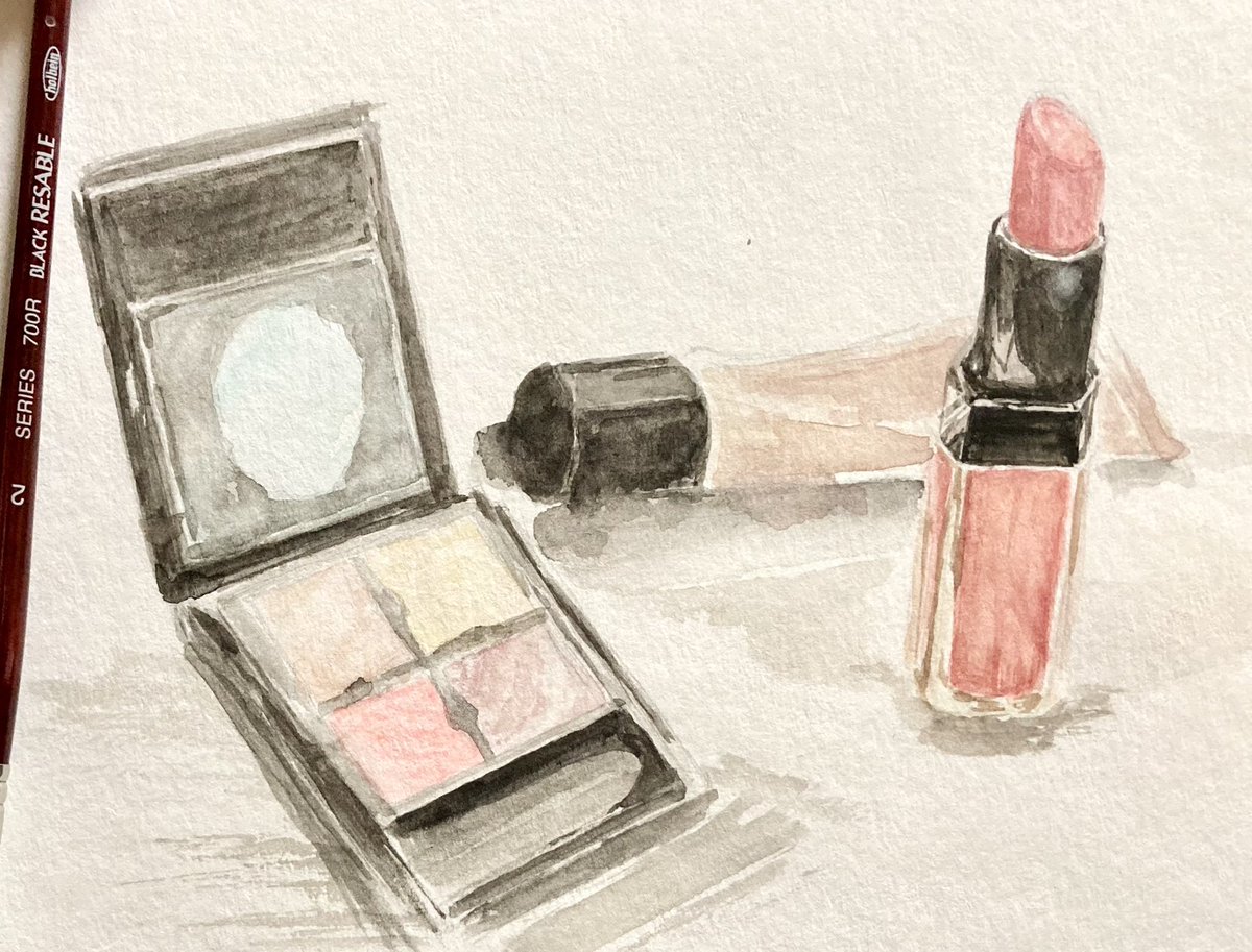 今日は0時に間に合わず遅刻😭 黒を使ってみたくてコスメを描きました もう少し描き込みたい感じです #水彩強化マラソン2021夏 #筆LOVE @HolbeinArt
