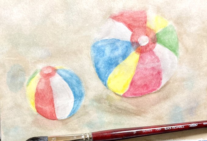 1 27 今日は紙風船を描きました 学生の頃鉛筆デッサンの課題で よく出てきたモチーフですが… 難しい💦 #水彩強化マラソン2021夏 #筆LOVE @HolbeinArt 21/07/15 23:48