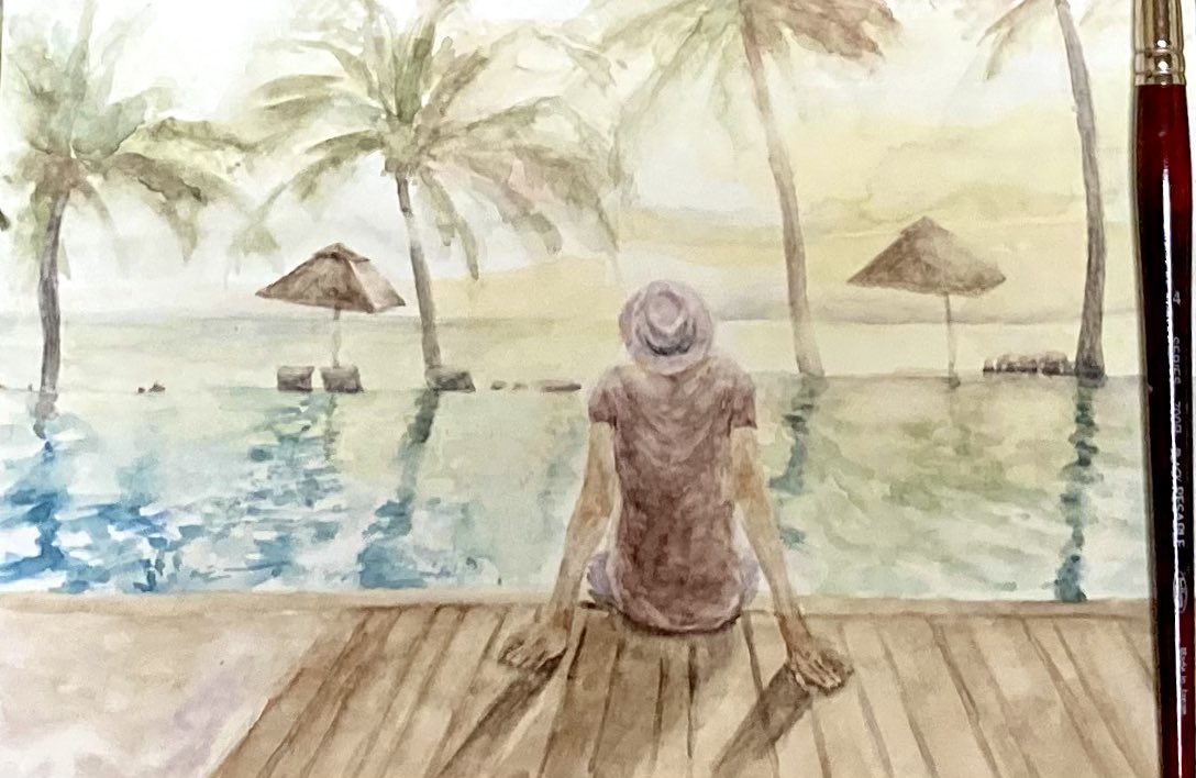 今日は楽しみにしてたイベントが 中止と知り、こんな気分だったので ふんわりと心境を描きました笑 #水彩強化マラソン2021夏 #筆LOVE @HolbeinArt