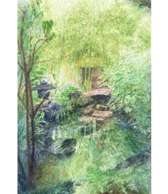 お庭描きました SMサイズ、ウォーターフォード #お絵描き好きさんと繋がりたい #水彩