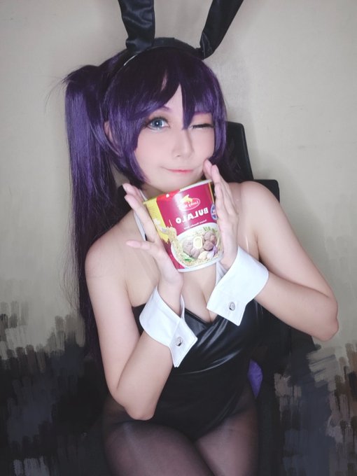 Will upload my Mona cosplay video tonight ! 😳 Today's meal is... Cup noodles again 😔💸 #Mona #GenshinImpact #bunnygirl #cosplay