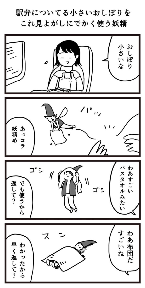 駅弁についてる小さいおしぼりをこれ見よがしにでかく使う妖精