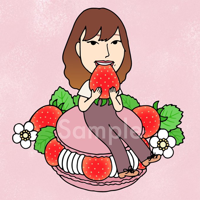 SNSアイコンに使用する似顔絵のご依頼✨ くすみ系カラーがご希望で、ピンクのアイテムを上手に着こなす、スイーツを食べる姿が可愛らしい方なので、苺マカロンとともに描いてみました🍓 #似顔絵 #イラスト #マカロン #苺 #アイコン #イラストすきな人と繋がりたい #絵柄が好みって人にフォローされたい
