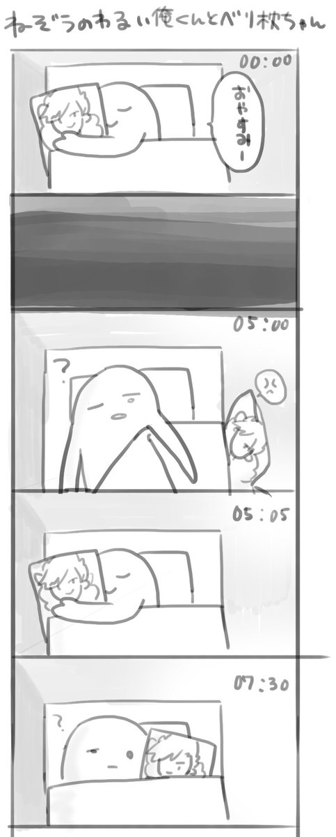 12 48 最近寝相が悪いという落書き。下に落としてしまったと思ったら、寝なおした位置と真逆の場所にちゃんと布団かかった状態で収まっていたりする 18/10/20 01:56