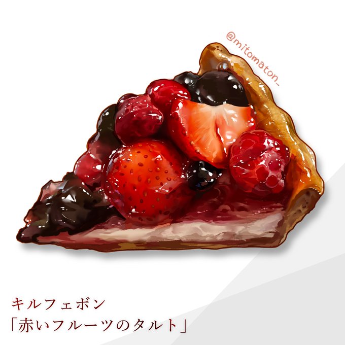 329 2154 新しいイラストです! キルフェボンの赤いフルーツのタルトのファンアートです。色んなベリーの甘酸っぱさが最高…🍓 ケーキ頂いた時など、キルフェボンの箱なのに気付くとテンションが上がります🍰 23/01/13 09:17