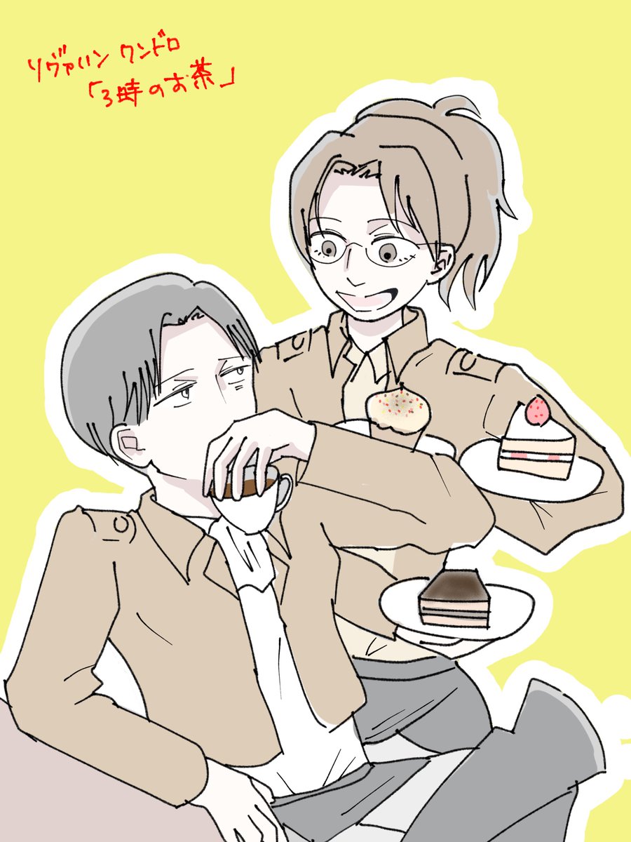 10 34 #リヴァハンワンドロbotお題 1h以上 「3時のお茶」 ご一緒にケーキはいかがでしょうか? 22/11/20 00:23