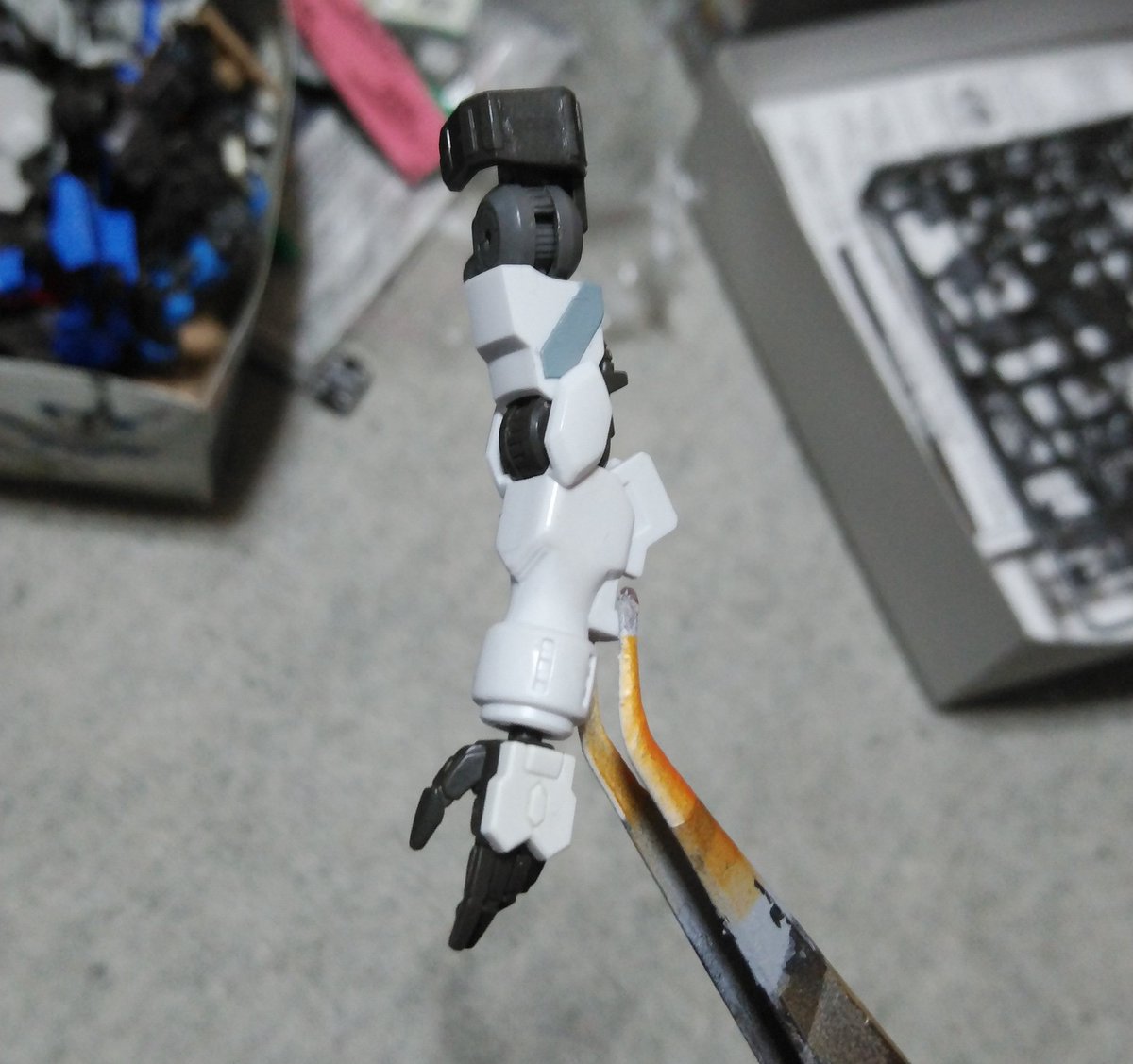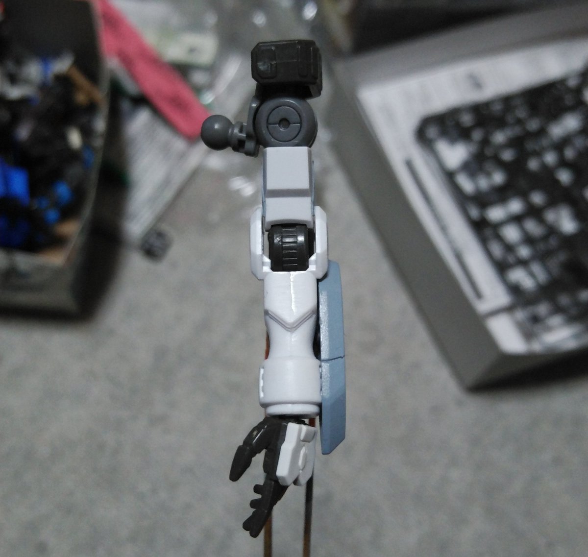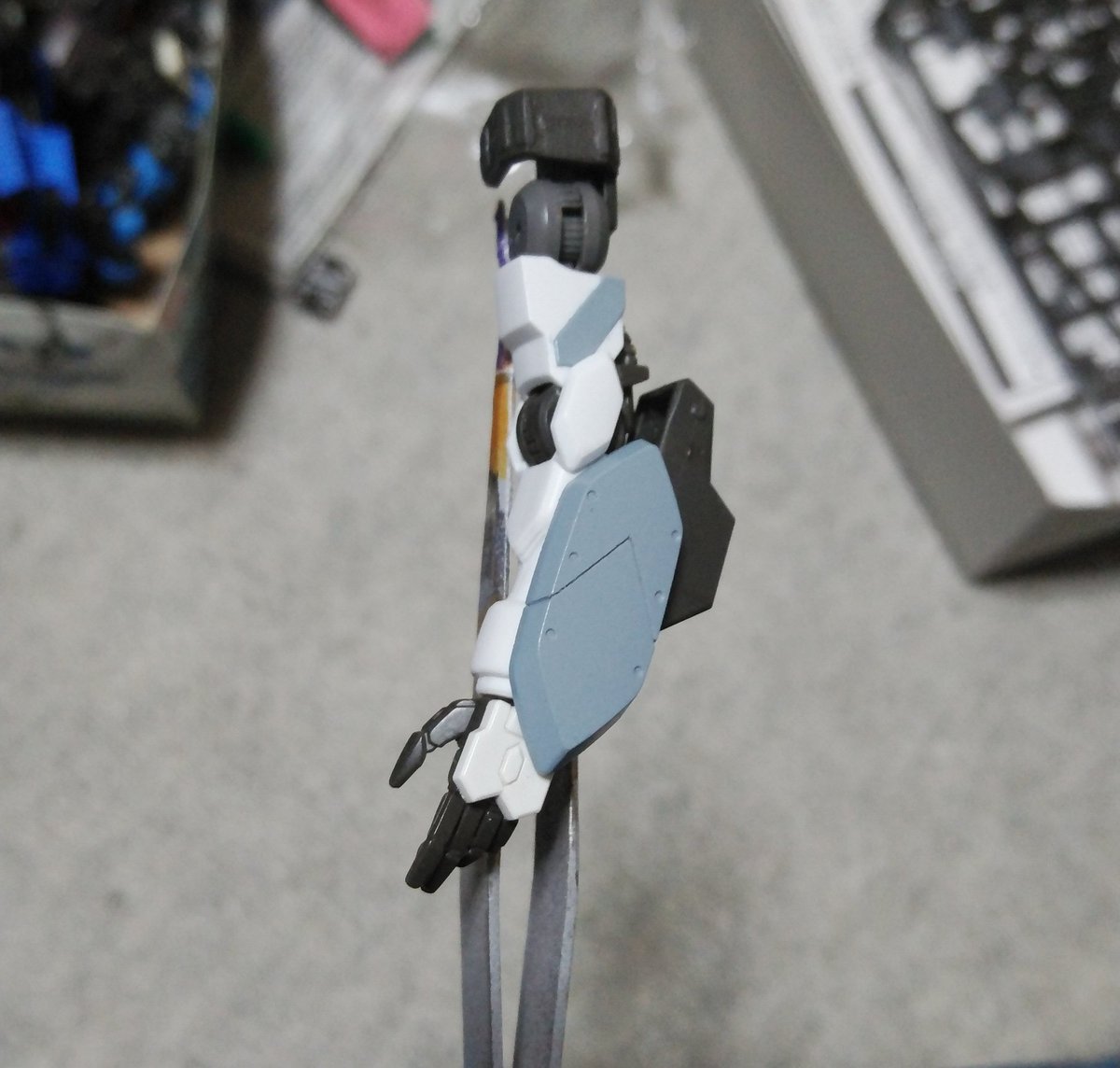 #ガンプラ バルバトス進捗。肘装甲とガントレットを接着。これで第一(二)形態↔第三形態が切り替え可能に 腕とガントレットの間に隙間をつくる事が出来た