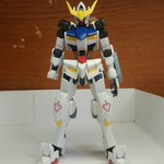 #ガンプラ バルバトス進捗2。腹部フレームを2キット分使って延長。あとは肩幅が気になったので根元から幅詰め。いい感じのバランスに(3枚目が延長後)