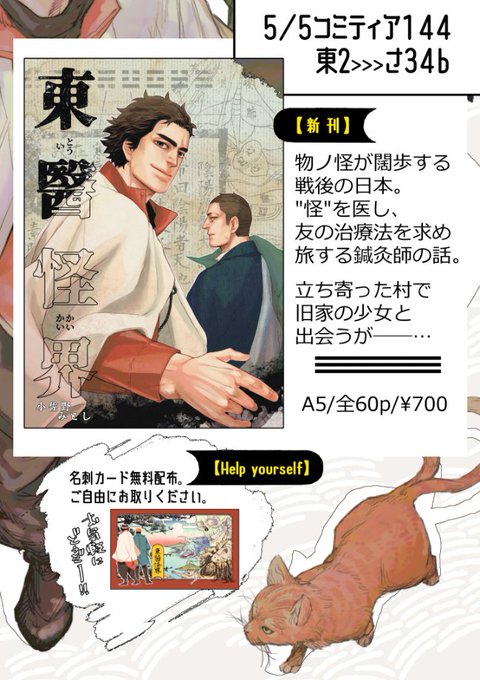 【5/5(金)コミティア144のお品書き】 ファンタジックな世界観で活躍する鍼灸師の話を、新刊用に書き下ろしました(ツリーにサンプル吊ります)。 そして無配で名刺カードがあります。こちらたくさんあるのでお気軽にお手に取ってくださいませ🙌🙌🙌 #COMITIA144 #コミティア144