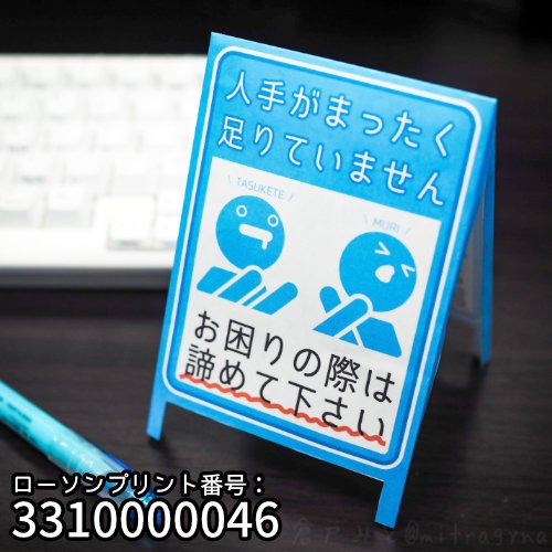 【人手不足のときに置くやつ】つくりました セブンイレブンのネットプリントに 「03665407」と入力すると印刷できます。 (2023.4.2(日)まで) Tシャツ版:suzuri.jp/mitragyna/1314…