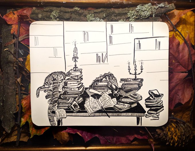 #inktober2020 Day 24 - Dig "— Мне даже никогда не приходило в голову искать его здесь! — взволнованно прошептала Гермиона. - А ведь я взяла ее в библиотеке еще несколько недель назад! Специально, чтобы отвлечься от учебников для, легкого чтения" (с) ГП и ФК