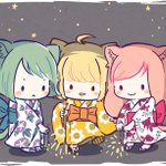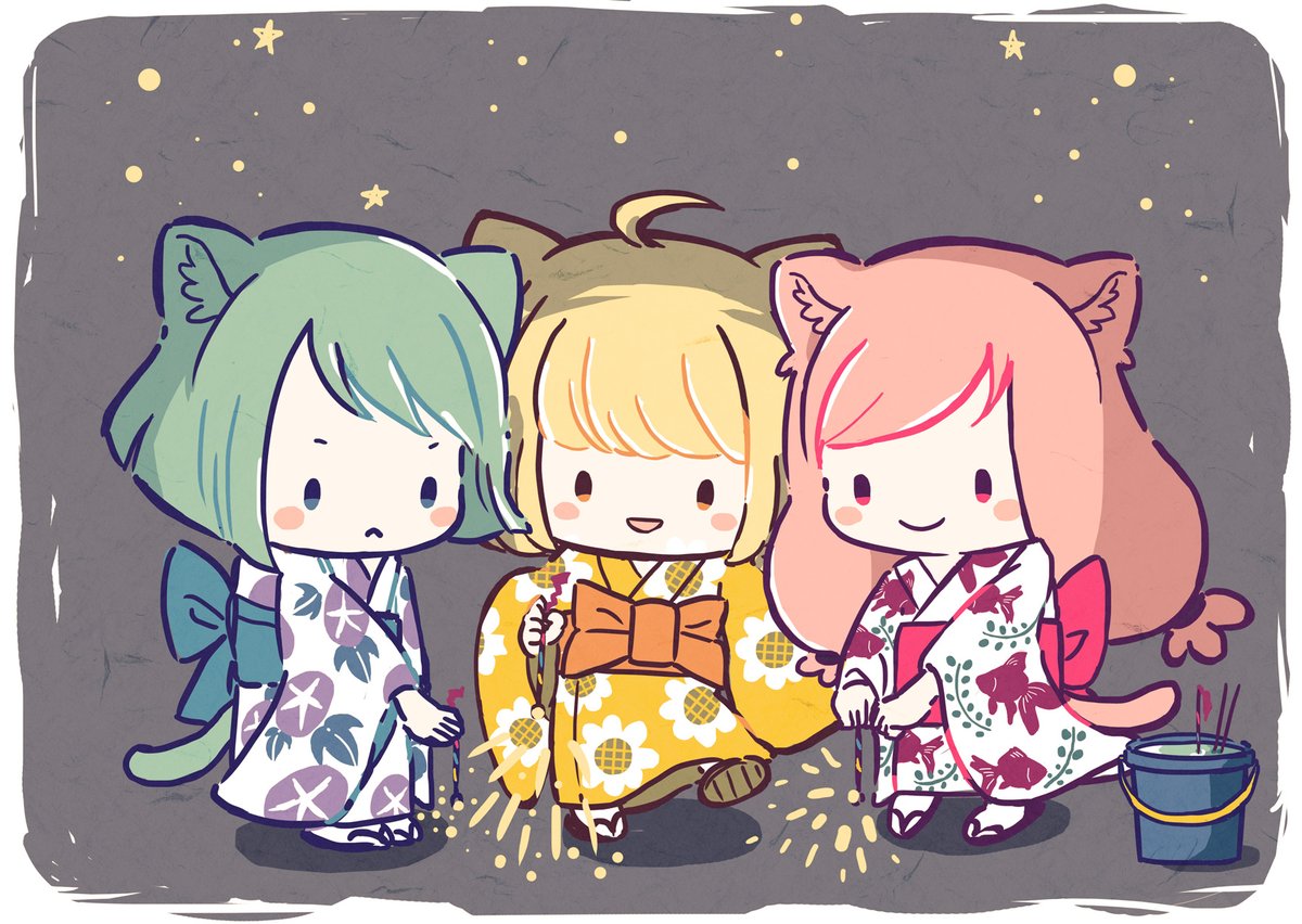 【浴衣で花火のバタキャ】雛&蒼&桃 。*:゜☆なつのおもいでVer.2022☆゜:。*。 #sdvx_art
