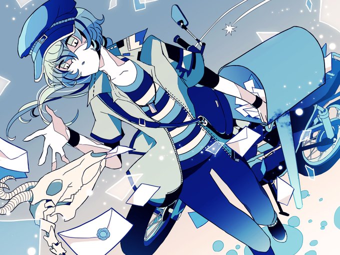 この間発掘したイラストをリメイクというか新たに描いてみた 冥界のポストマン。好物はラムネ菓子 #イラスト #創作男子