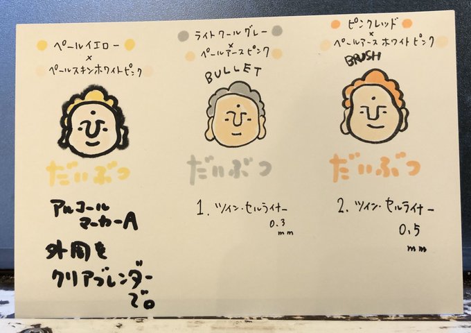 #キャンドゥ の #アルコールマーカー 肌色と黒が複数あるので比較してみました‼️ 以前の #copic #daiso #セリア #cando のもご参考に‼️ instagram.com/p/BuWO8HjAsJt/… #アルコールインクマーカー #アルコールペン #アナログ絵描きさんと繋がりたい #仏画 #自由研究 #アナログ絵 #ペン画 #大仏 #仏像