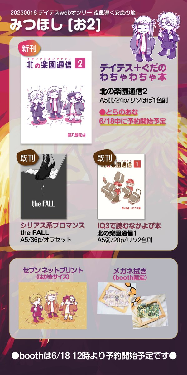 10 10 6/18 デイテスwebオンリー お品書きできました〜〜! 0時直後は不在の予定です 12時くらいになったら行きます〜〜! pixiv.net/artworks/10909… #DTWEBオンリー 23/06/17 21:57