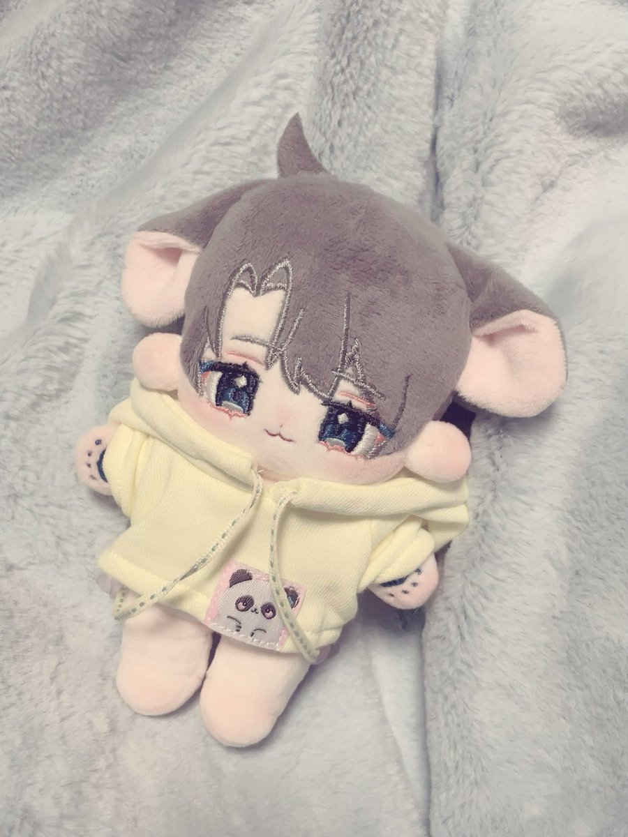 アンケートで見た目決めてもらった創作ぬい完成しました〜!✨ 羊イメージのケモ耳を付けました…! チークは加工です! #自作ぬい