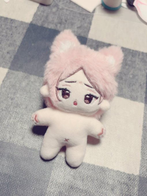 16 167 アンケートで見た目決めてもらった創作ぬい完成しました〜!✨ 羊イメージのケモ耳を付けました…! チークは加工です! #自作ぬい 22/09/01 17:51