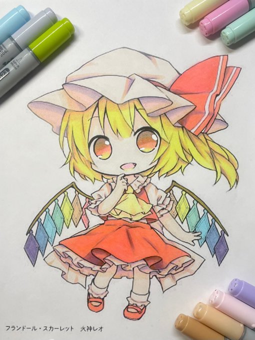#アナログ #コピック #copic #女の子 #東方project #東方イラストテクニック #フランドール・スカーレット 東方イラストテクニックの火神先生の線画をお借りして塗りました😊 チャオデビューセットにある色で塗ってます♪ 粗茶先生のフランちゃんのメイキング動画を参考にさせていただきました😆
