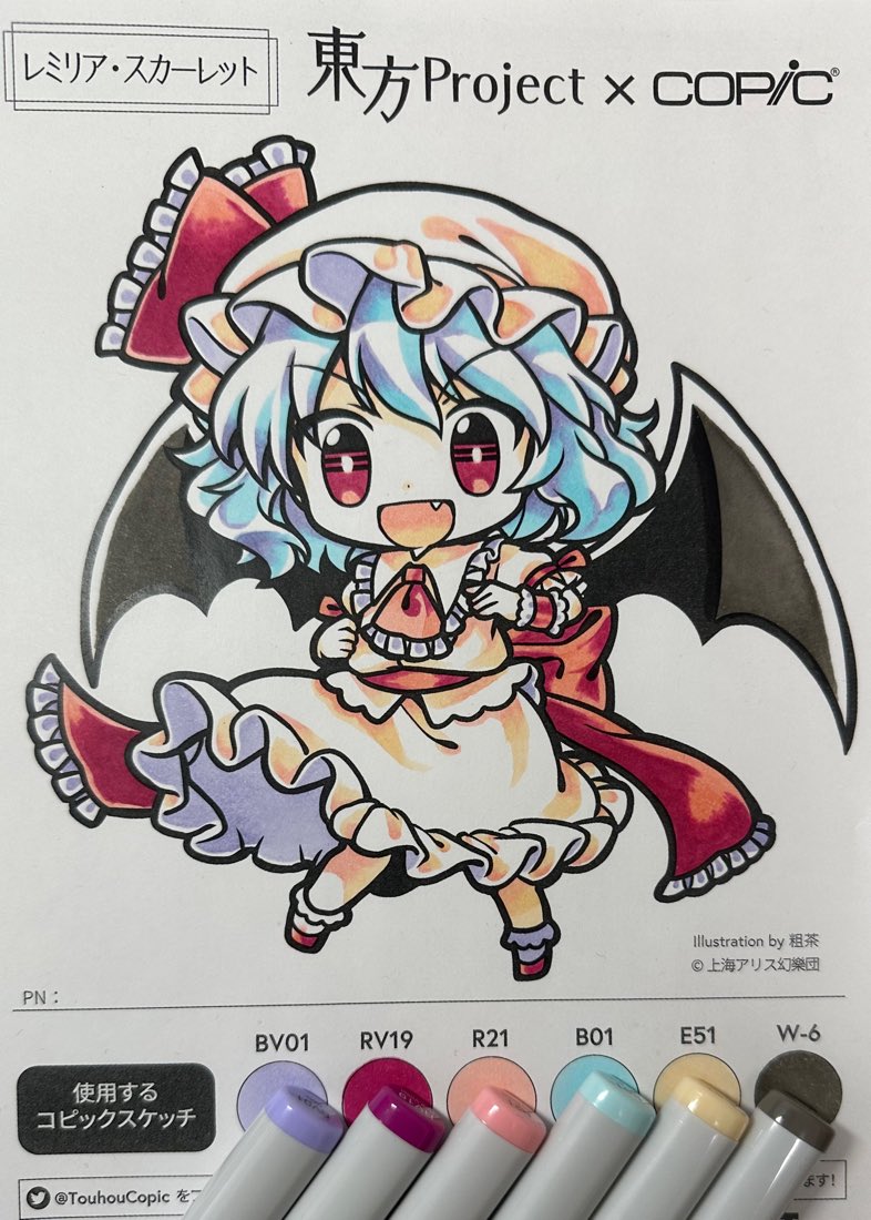 #東方project #copic #コピック #アナログ #女の子 #レミリア・スカーレット 粗茶先生の線画をお借りして塗りました! メイキングの先生が塗るグラデーションがとても上手くてなんとか真似しようとしましたが、中々難しいですね💦 6色なのに素敵な配色を毎回考えておられるのがすごいです🥰