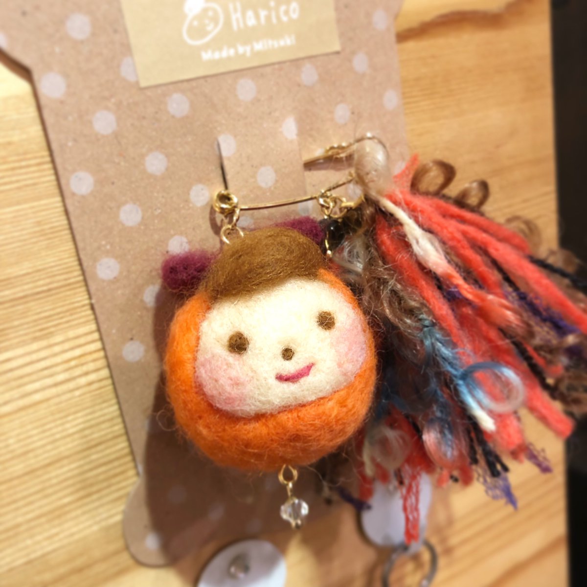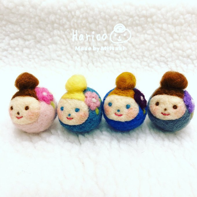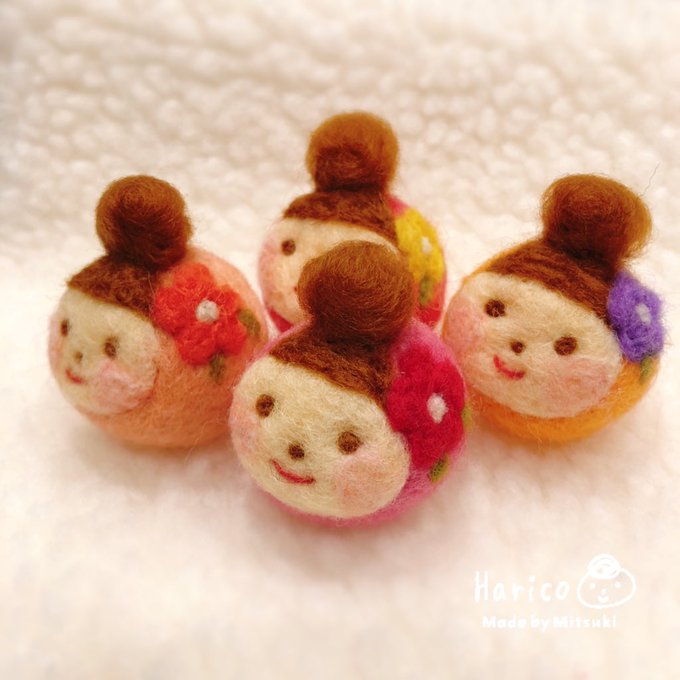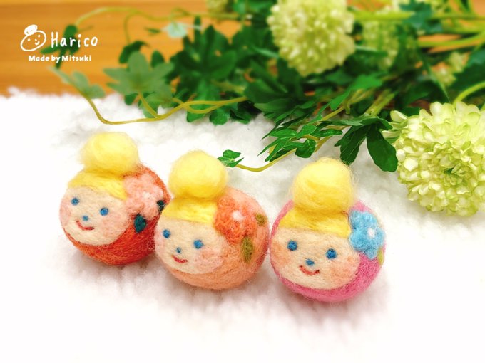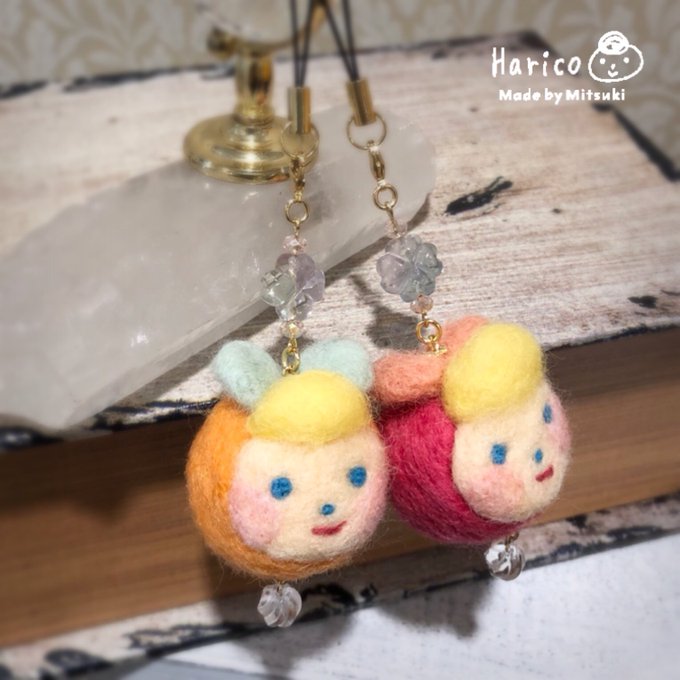 明るめハリコ追加します( ¨̮ ) #羊毛フェルト #羊毛 #ストラップ #お団子ヘア #リボン #クリエイター #morimitsuki #大分市 #お土産