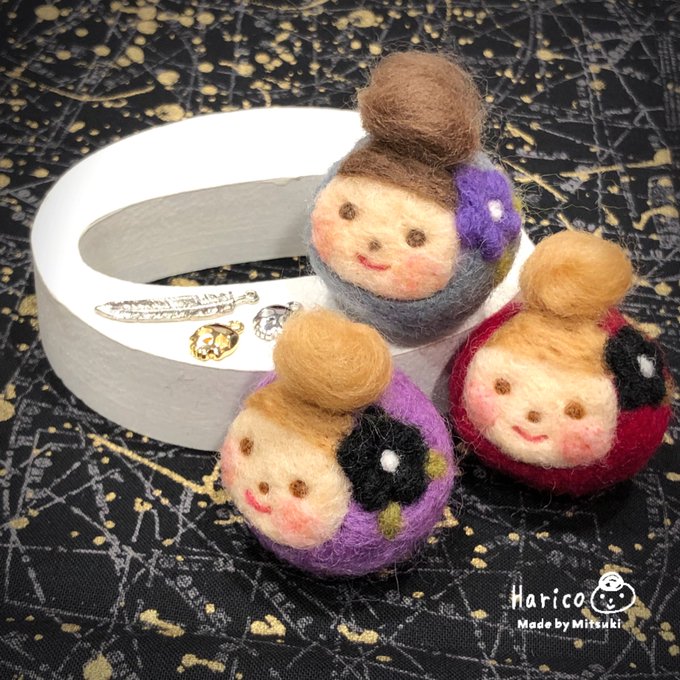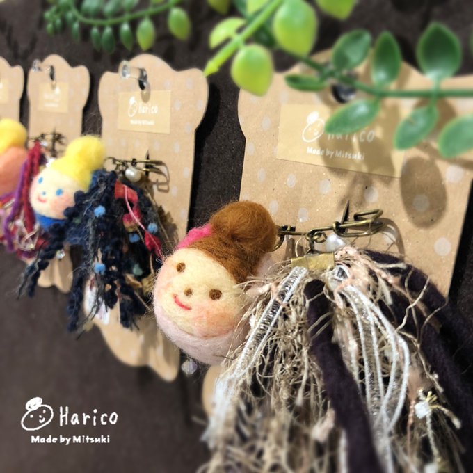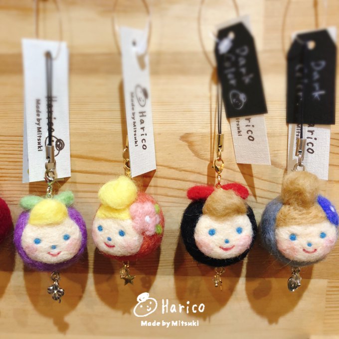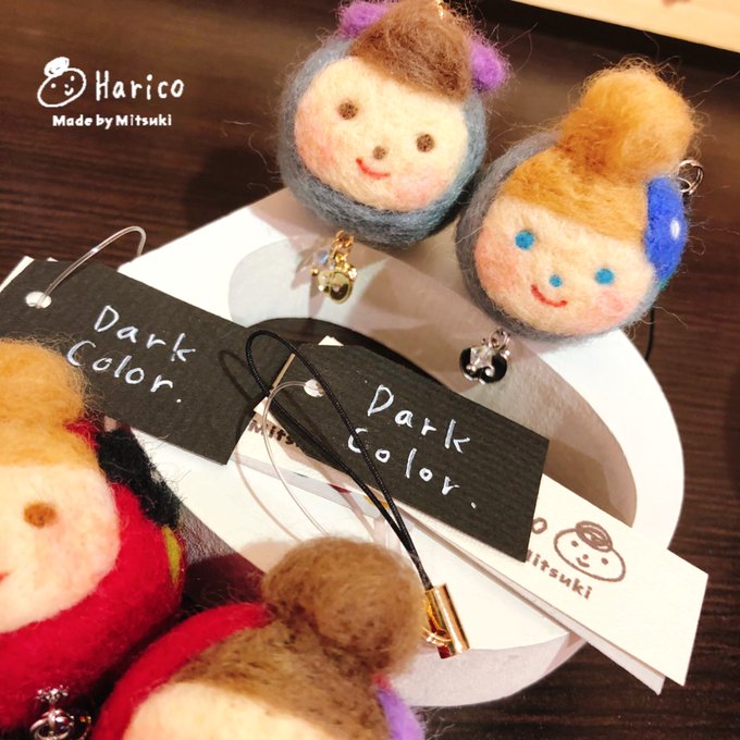 0 4 あまり作らない黒いハリコを追加しました( ¨̮ ) (右)髪色も違うダークカラー。 (左)定番ハリコ。 #羊毛フェルト #ハリコ #harico #ハンドメイド #handmade #クリエイター #大分市 #かわいい #ストラップ 20/08/08 14:43
