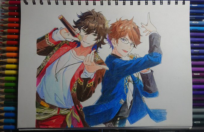 ギリギリ間に合った笑 あんさんぶるスターズより、佐賀美先生と椚先生描きました #あんさんぶるスターズ #あんスタ #色鉛筆画 #模写 #少しでもいいなと思ったらRTorいいね #佐賀美陣 #椚章臣