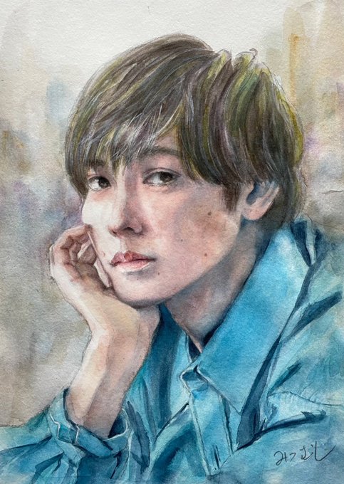 2 81 awesome! Vol.45 様より、#猪塚健太 さんを描きました。(F4号 / ストラスモア) この号の猪塚さんは明るい光の中で夢見るようでとっても素敵でしたねー🥰🥰 12月2日発売のまるまる一冊猪塚本「Special Thanks」に期待が高まります!! #ポルノグラファー #水彩画 #人物画 #アナログ絵 #ファンアート 21/11/28 17:07