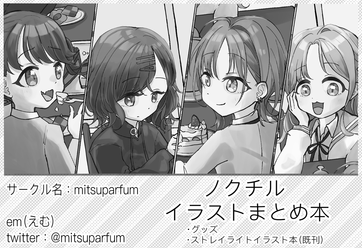 歌姫庭園28に申込みました! 今回ノクチルイラストまとめ本を出す予定です。既刊のストレイライトイラスト本もあります。参加できたら、よろしくお願いします🍰!