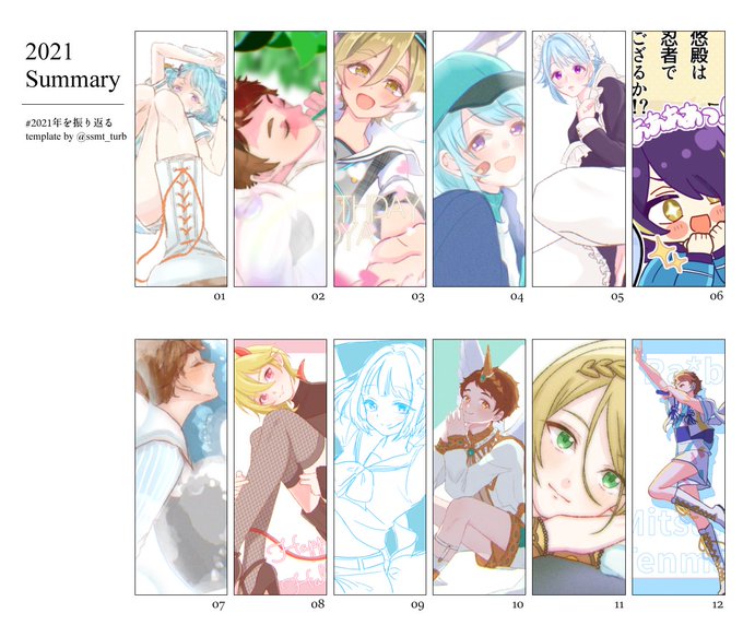 4 18 今年描いたやつ私もまとめてみました〜〜! 書いてるつもりであんまり描いてなくて、描けなかった月はいっぱい描いた月のを当てはめてます😂笑 また来年もよろしくお願いします(*ᴗˬᴗ)⁾ 21/12/31 22:45