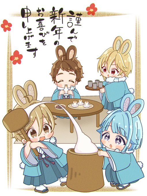 あけましておめでとうございます🎍🤍 遅くなりましたが描き初めは餅つきRa*bitsさんです🐰 今年は兎年なのでRa*bitsに沢山の良いことがありますように🤍