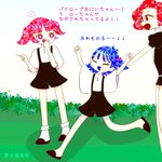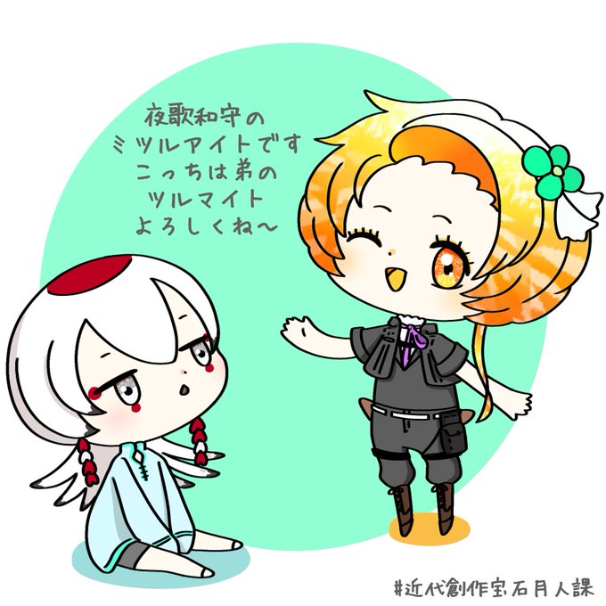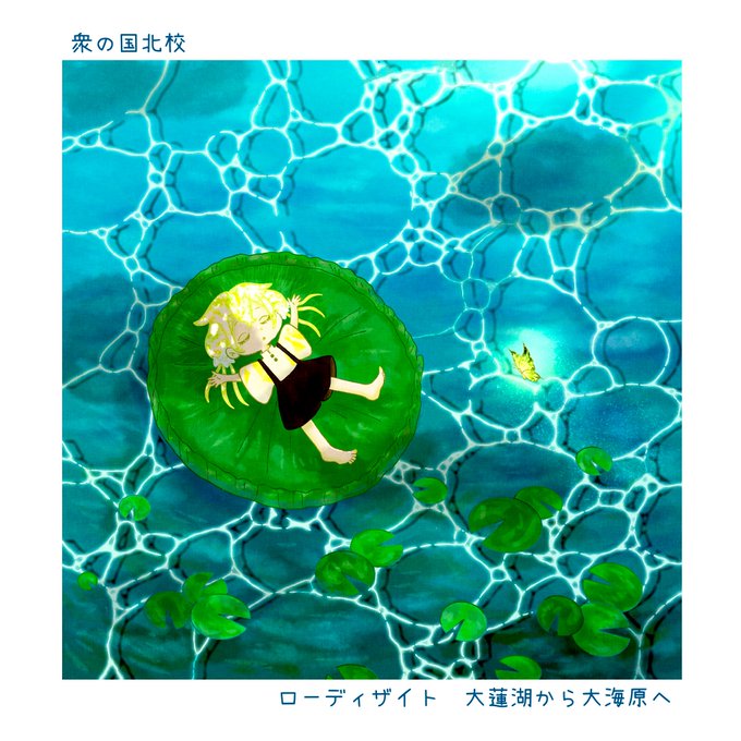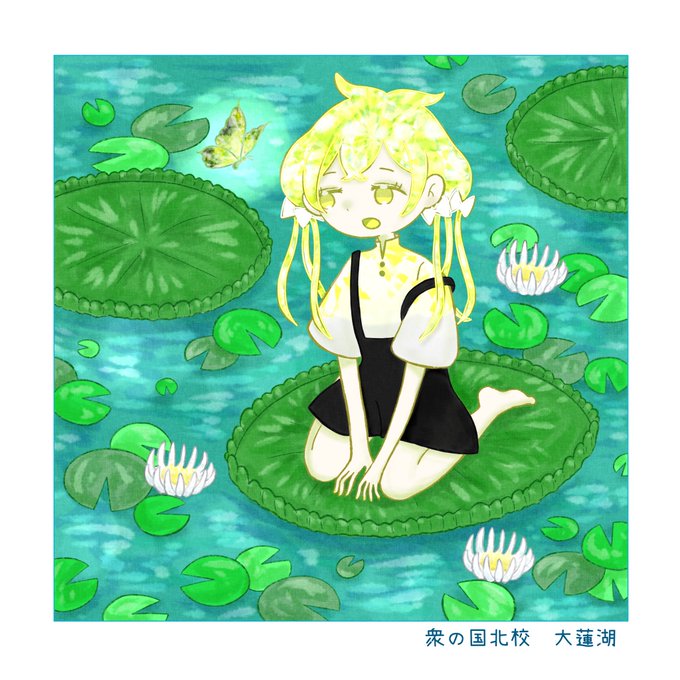 #創作宝石版深夜の創作60分一本勝負 #創作宝石 #衆の国 『水遊び』…? ローディザイトが乗れるくらいの大蓮の葉 島の地理を学ぶために課外学習中の一コマ 大蓮湖には反射した色彩を真似る蝶々がいるんだって