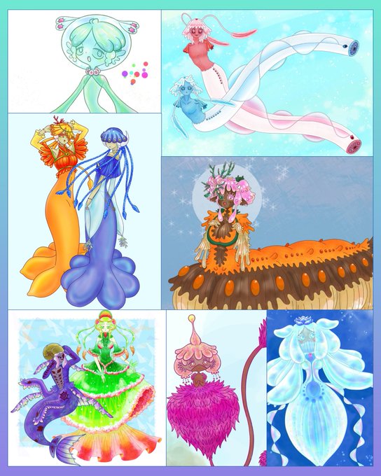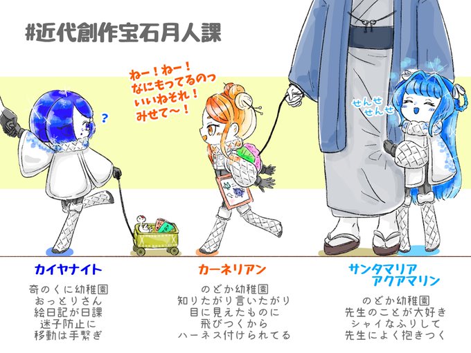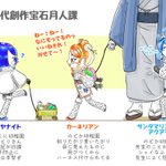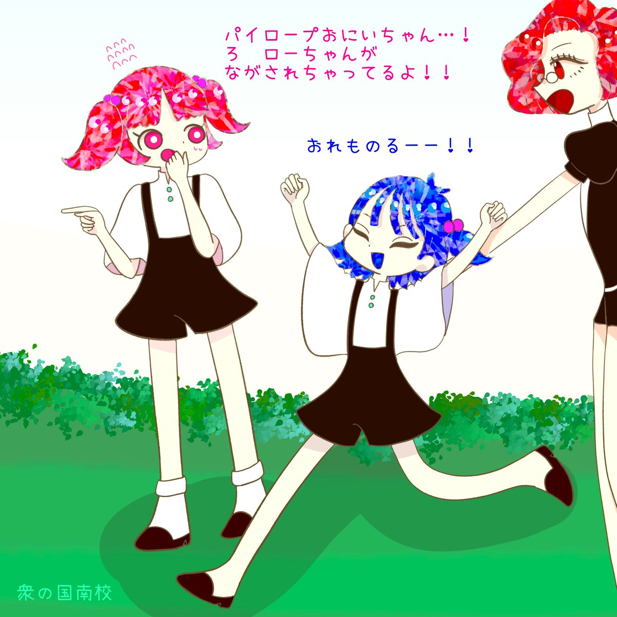 #創作宝石版深夜の創作60分一本勝負 #創作宝石 #衆の国 『水遊び』…?? 流されるローちゃん 慌てるアルマンディンにはしゃぐカラチェン 今日のちびっ子たちの監督役パイロープは大変だね 塗り方をいつもとちょいと変えてみたのさ
