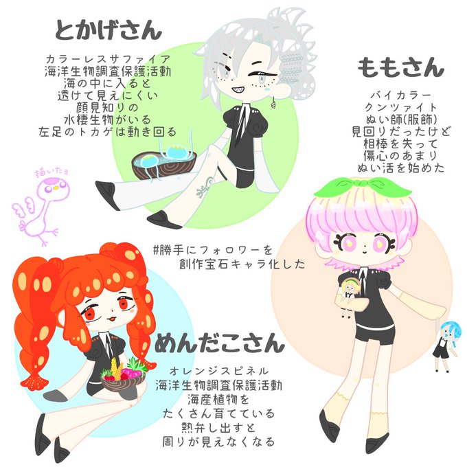 #勝手にフォロワーを創作宝石キャラ化した 第一弾! いいねしてくれた人を…だとすごい待たせる気しかしないから勝手に描きました😌 突発的に描き始めたのでいつもと違う感じに塗っちゃった これからも突発的に相互フォロワっさんたちを勝手に描かせていただきます👍✨ご了承ください〜