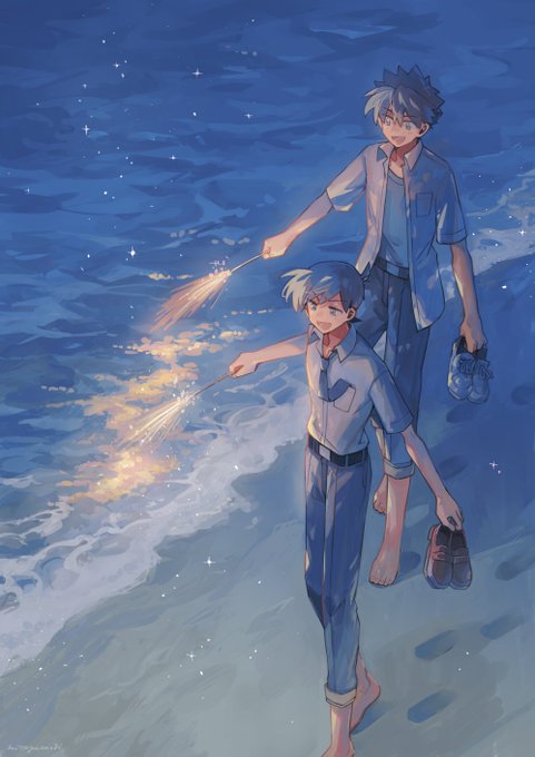 夏の海と花火と快新