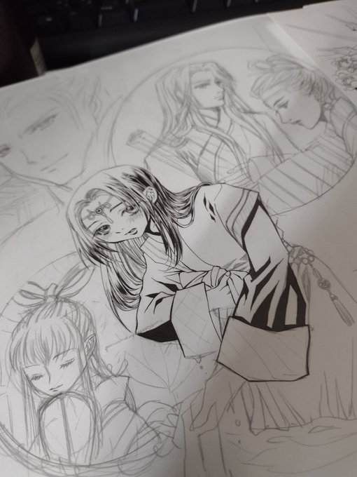 年内予定の設定資料本準備号用のラフ。 グラングリモアのハイセリーナ姫と蛇鳥の姿で毒の使い魔ヴェルスパー。セリアのコピー用紙にシャーペン。 #絵描きさん交流会 #𝕏交流会会場 twitter.com/mii46865627/st…