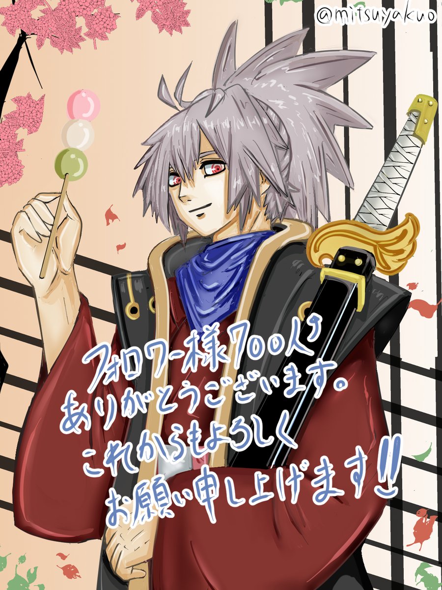 おはようございます。 これでも書道初段の三ツ矢です。 「フォロワー様700人おめでとうイラスト」描けましたー。 これからは能動的な姿勢でいこうと思いますので、改めてよろしくお願いしたします〜👍 #イラスト #絵柄が好みっていう人にフォローされたい