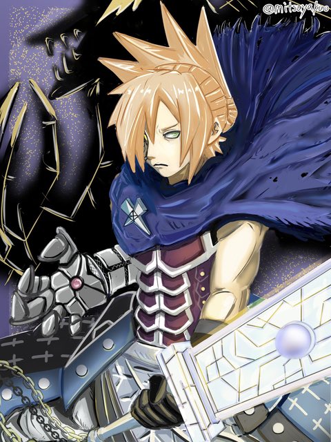 @y_vdo こんにちは、初めましてどんどこさん。 企画ありがとうございます。 交流会がキンキンに冷えたビールよりありがたい、中二キャラ描きの三ツ矢と申します。 創作オリキャラを張らせて頂きます。 よろしくお願い致しますm(_ _)m #イラスト企画 #絵描きさんフォロバします
