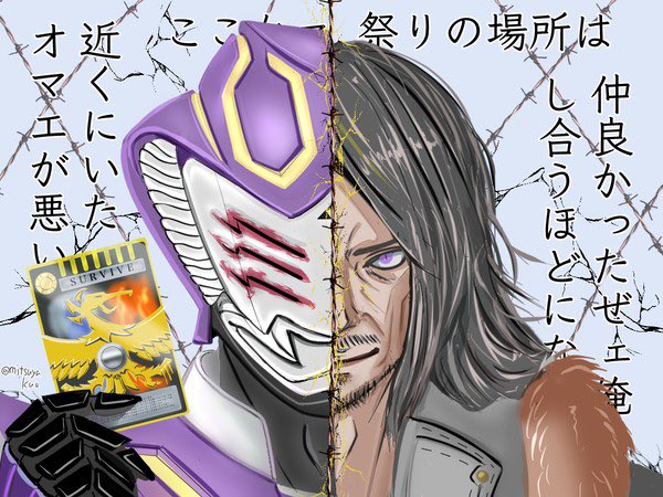 新成人の方々、おめでとうございます。 社会の荒波に揉まれ挫けそうなときは、仮面ライダー王蛇こと浅倉威のように「俺をイラつかせたオマエが悪い」の精神で参りましょう! なので、王蛇サバイブ化おめでとう! #イラスト #三連休はフォロワーさんが増える