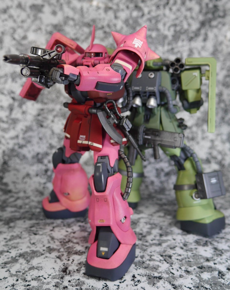 2 7 MG シャア専用ザクII F2 先に作ったザクと統一感持たせたくて塗装とデカールでジ・オリジンぽくしてみた #ガンプラ #ガンプラの画像を貼るとRTされると聞いて 20/11/21 10:14